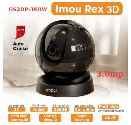 AN NINH 360° cực mạnh, Camera Wifi Imou 3.0MP Rex 3D IPC,GS2DP,3K0W phát hiện người & thú, xoay ngang 355° dọc 90°, cảnh báo còi & âm thanh, theo dõi thông minh, hỗ trợ thẻ nhớ 256GB
